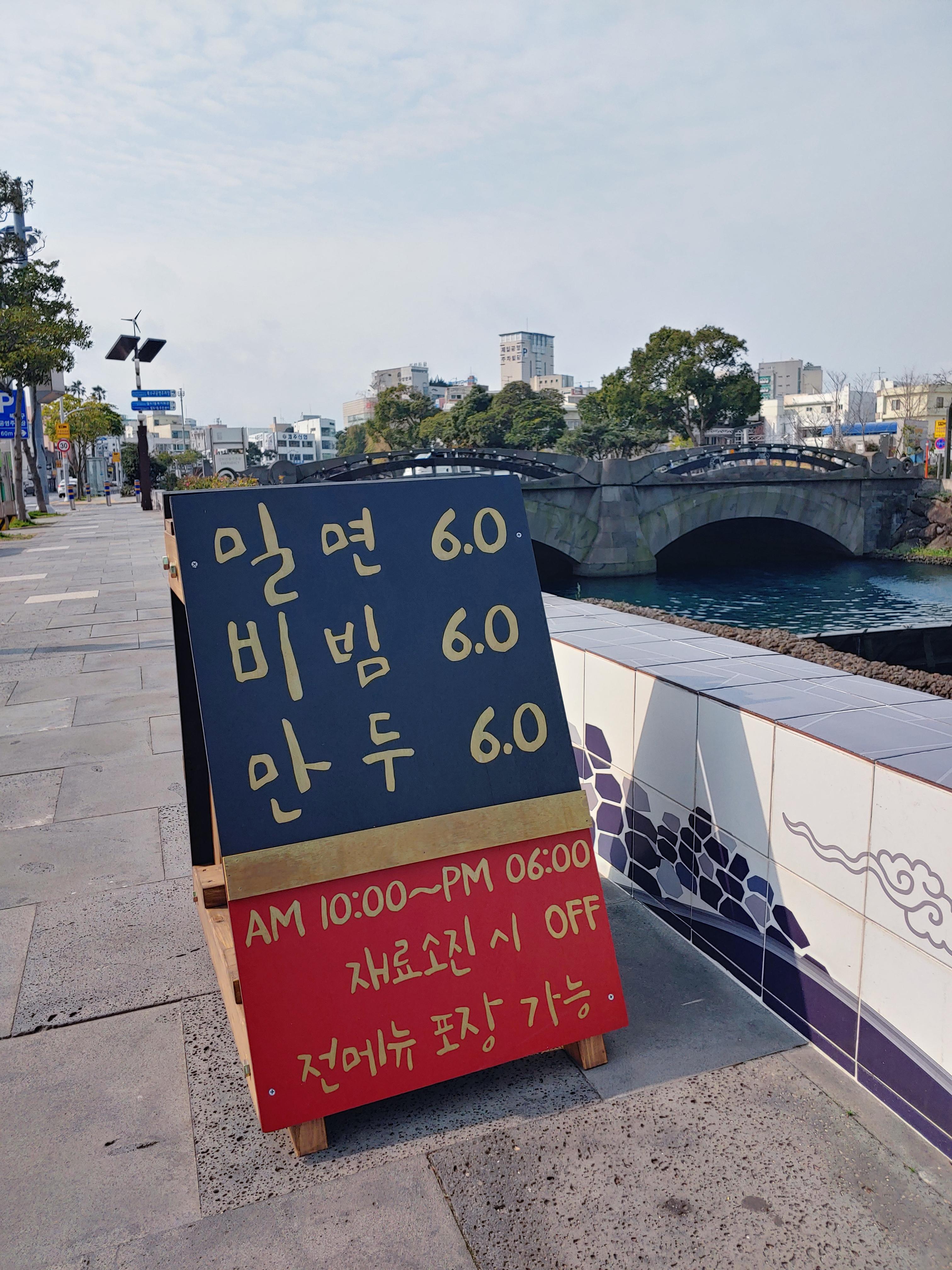 길 건너 인도엔 이렇게 안내판도 세워놨다. 전 메뉴 6천원.
