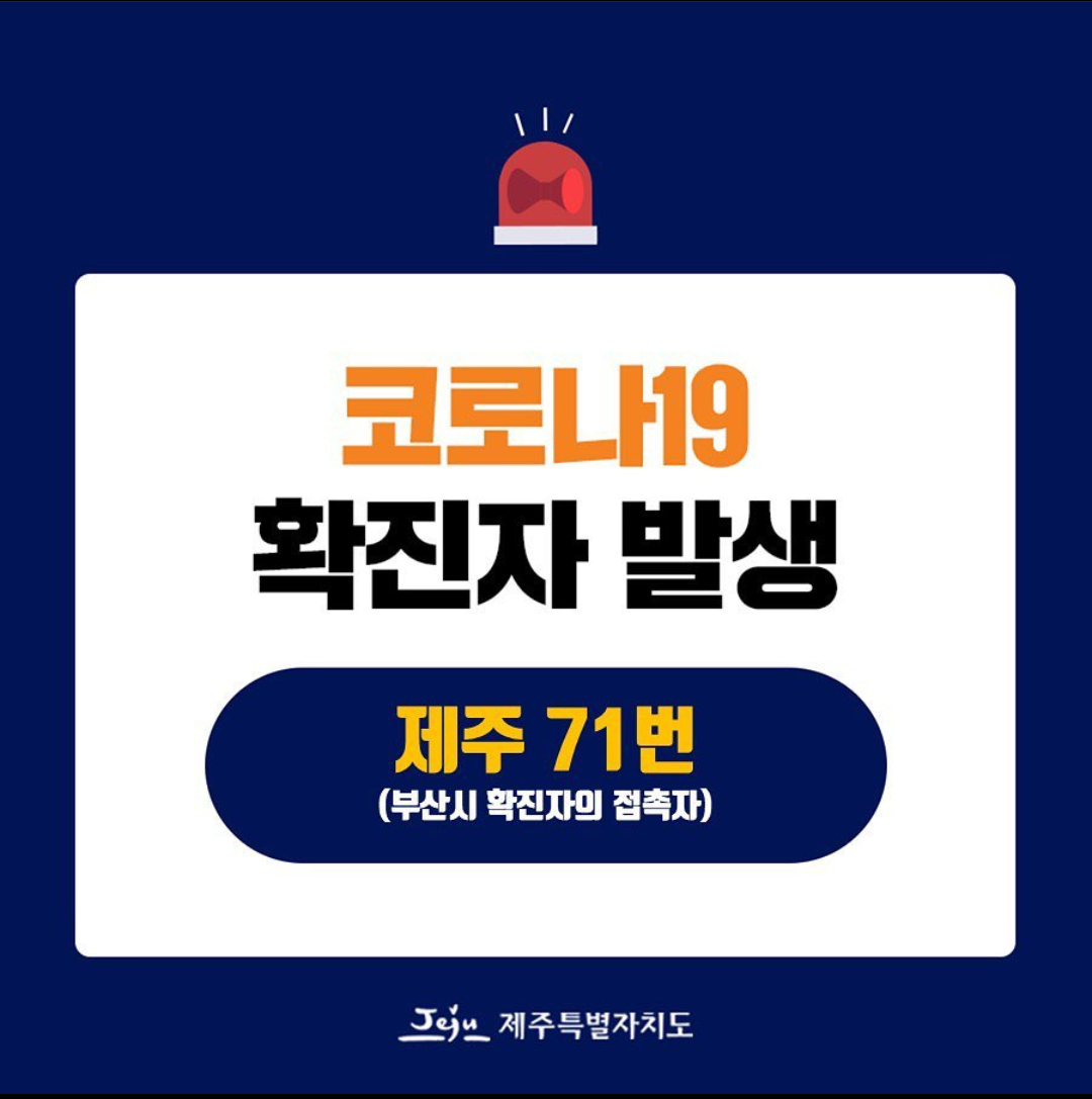 71번 확진자는 지난 11월 22일 입도한 뒤 부산 확진자와 접촉 사실을 통보받아 검사를 받으면서 확진된 것으로 나타났다.