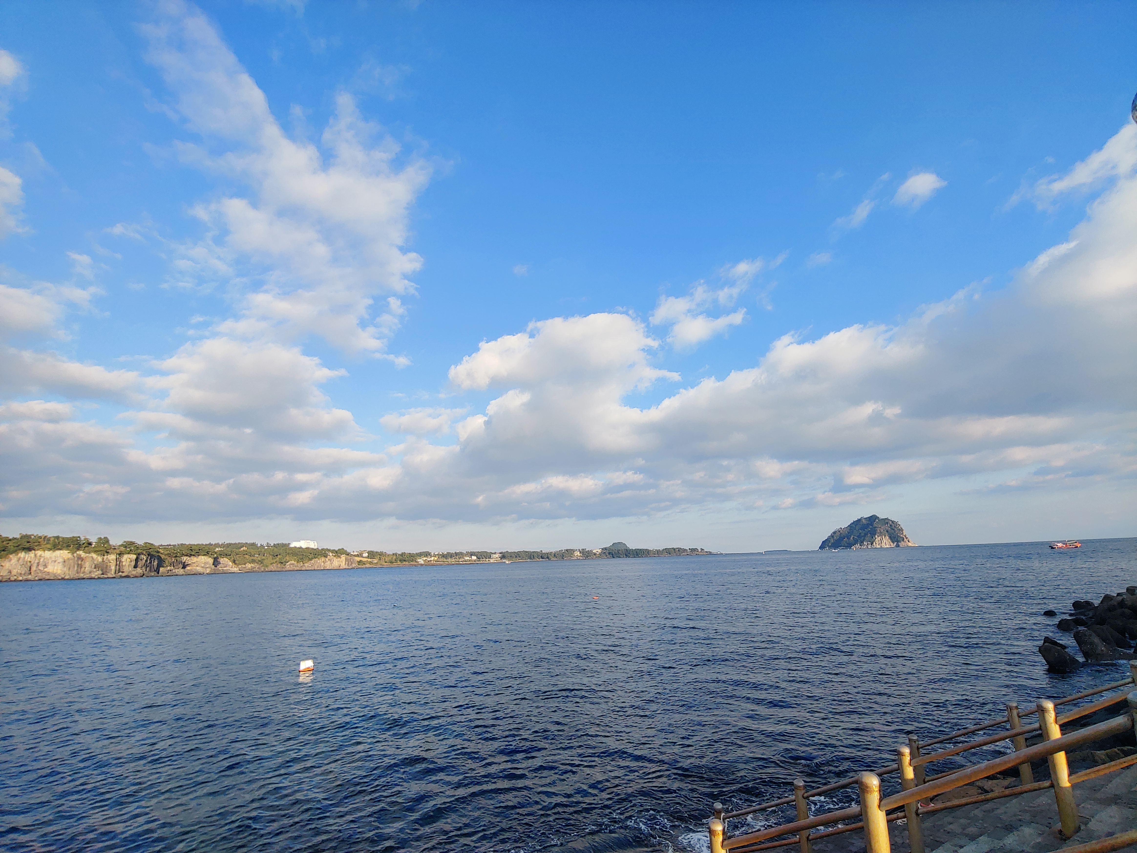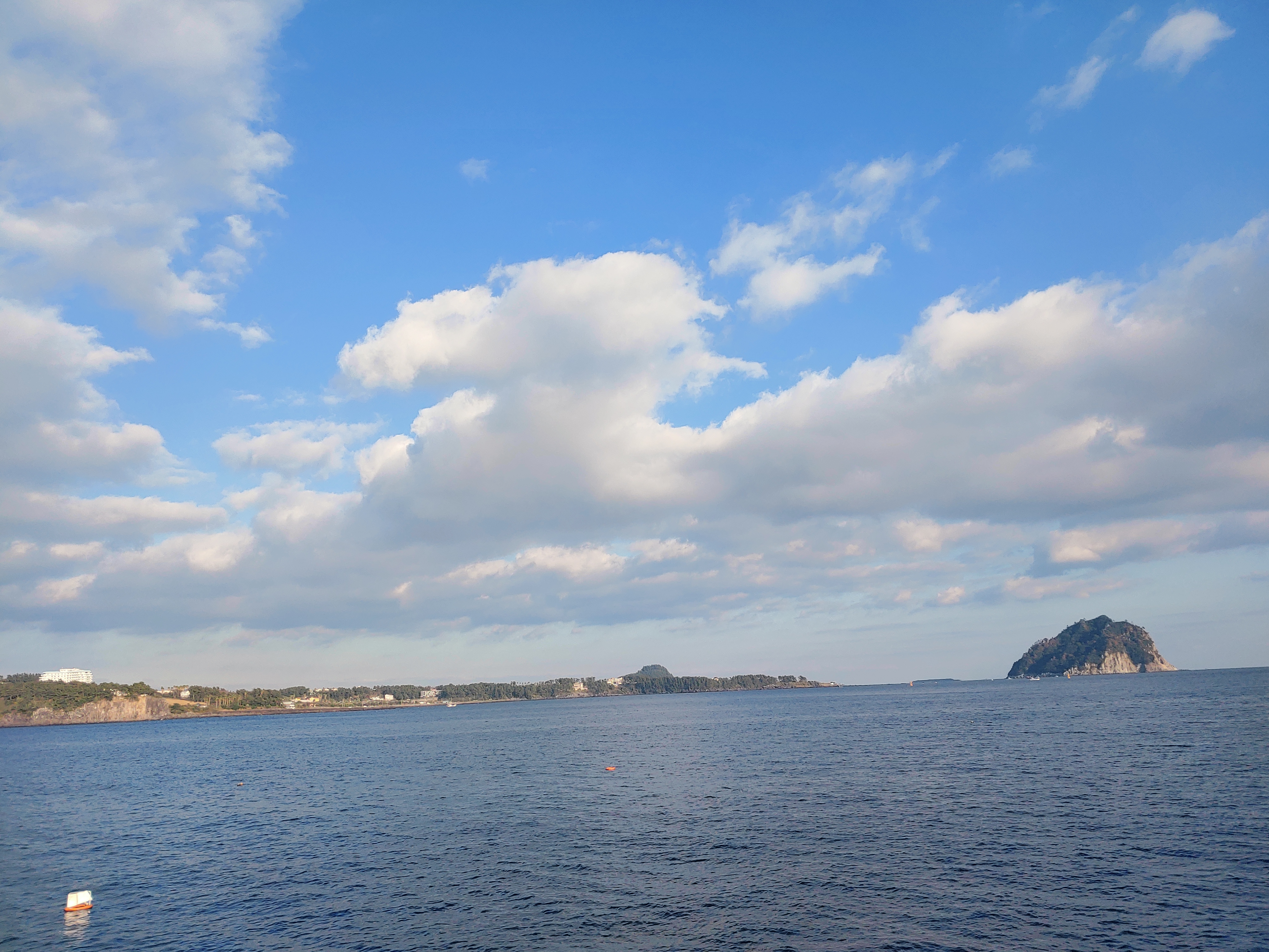 The weather was getting better as we were approaching the east pier of Seogwipo port. Look at the blue sky between clouds!