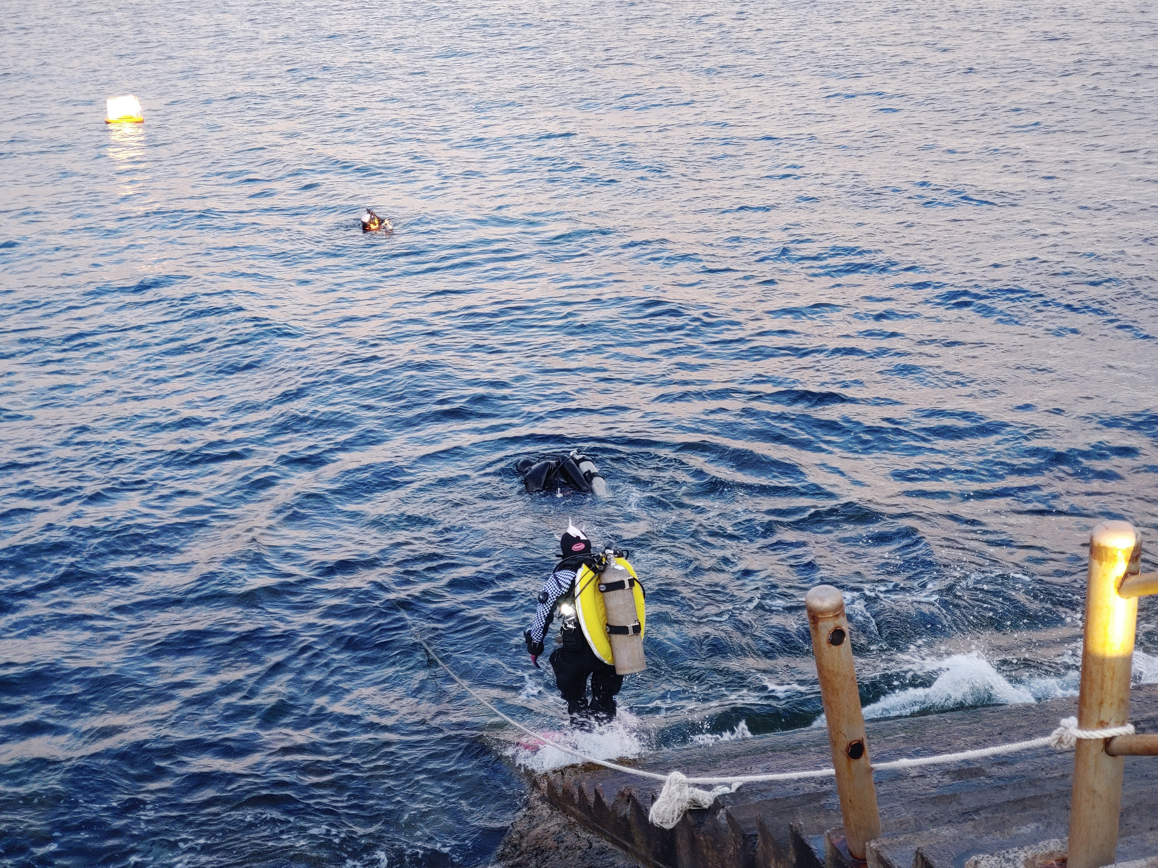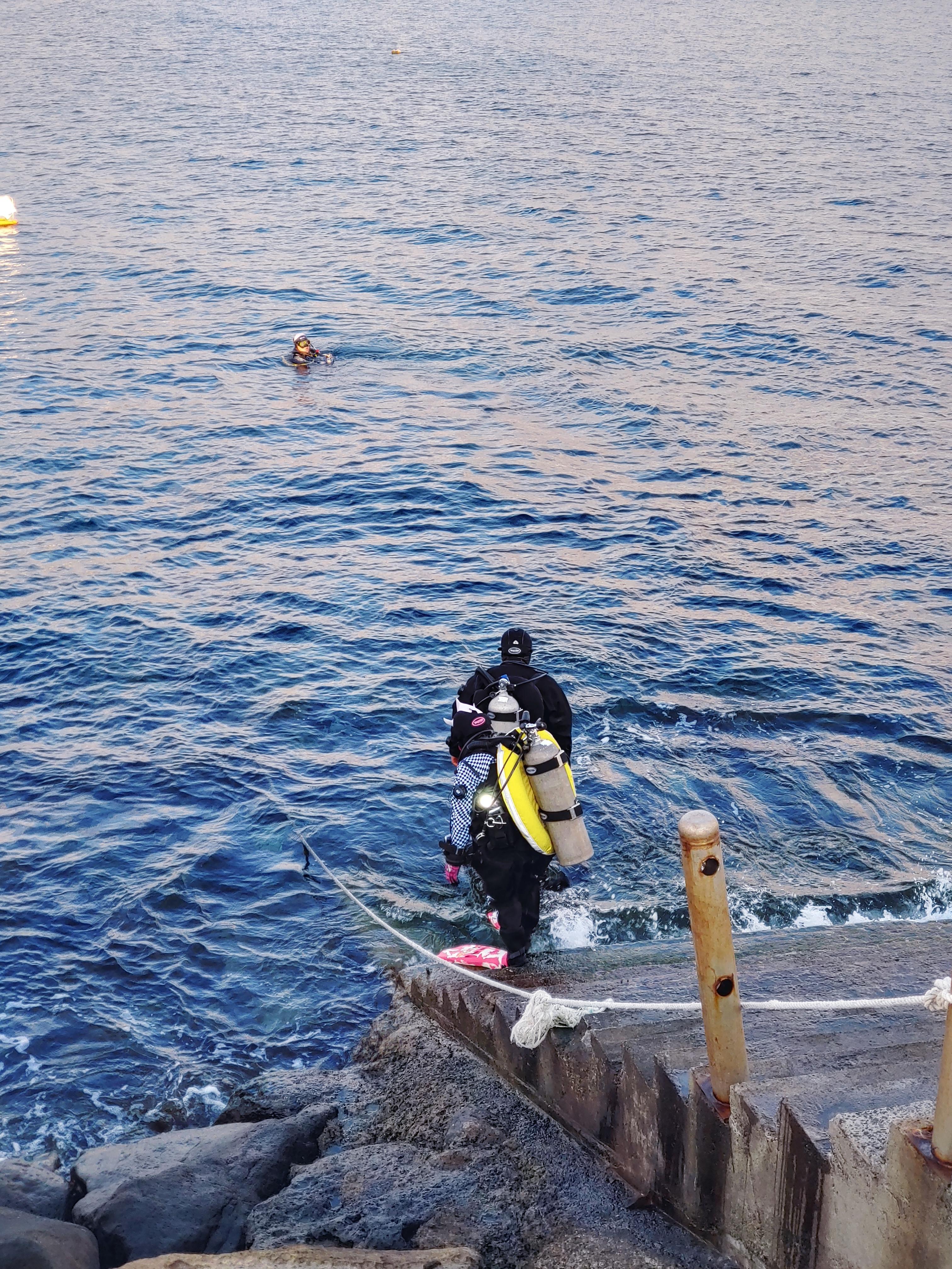 우리보다 앞서 잠수하러 들어가는 다이버들.