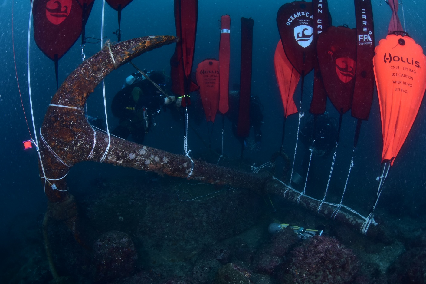 10 liftbags and 50 surface marker buoys were used to do the work!
